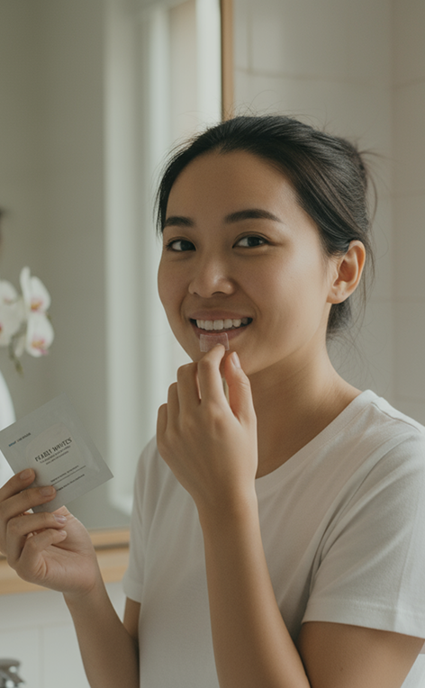 Singapore's first botanical-powered, peroxide-free teeth whitening strip that keeps enamel safe, supports oral cleanliness and leaves your smile naturally bright.